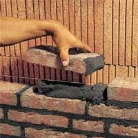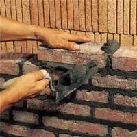 Pełnospoinowe murowanie za pomocą zaprawy murarskiej quick-mix V.O.R., wysoka elastyczność i dobra przyczepność zaprawy do cegieł.